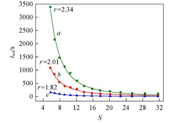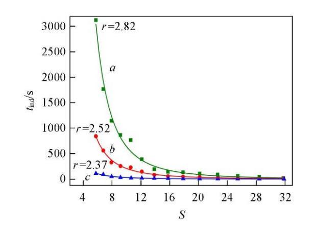 成核诱导期与过饱和度的半经验关系式[33]如下: